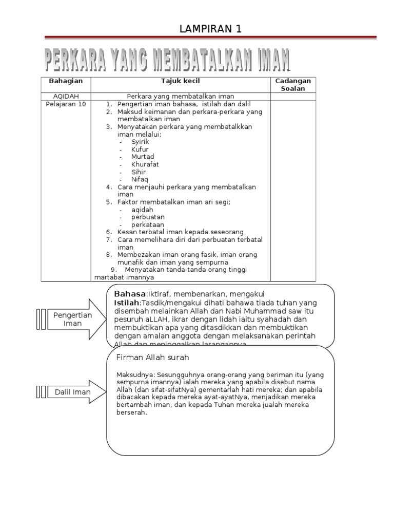 Kssmpk Perkara Yang Membatalkan Iman Worksheet