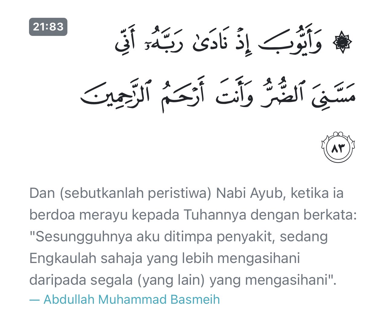 Hafiz Hamidun On Twitter Doa Meminta Supaya Allah Menyembuhkan Penyakit Seperti Yang Didoakan Oleh Nabi Ayub Seperti Dalam Surah Al Anbiya Ayat 83 Https T Co Noijt6dshy Twitter